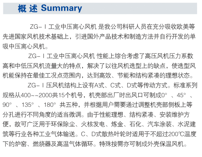 ZG-I工业中压离心风机